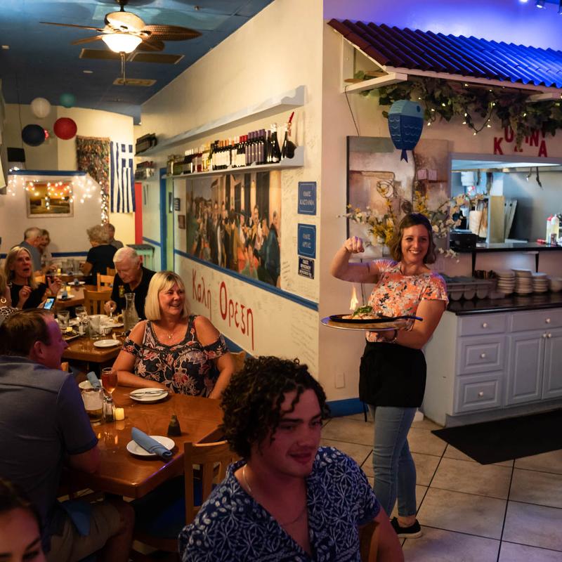 Mykonos Kuzina is a casual upscale Greek and Mediterranean restaurant. The ambiance is modern and elevated while maintaining traditional Greek charm. The food is authentic, the waitstaff is attentive, and the energy and positive vibes will make you feel comfortable and welcome! Mykonos Kuzina is an awarded Naples Neighborhood Gem!